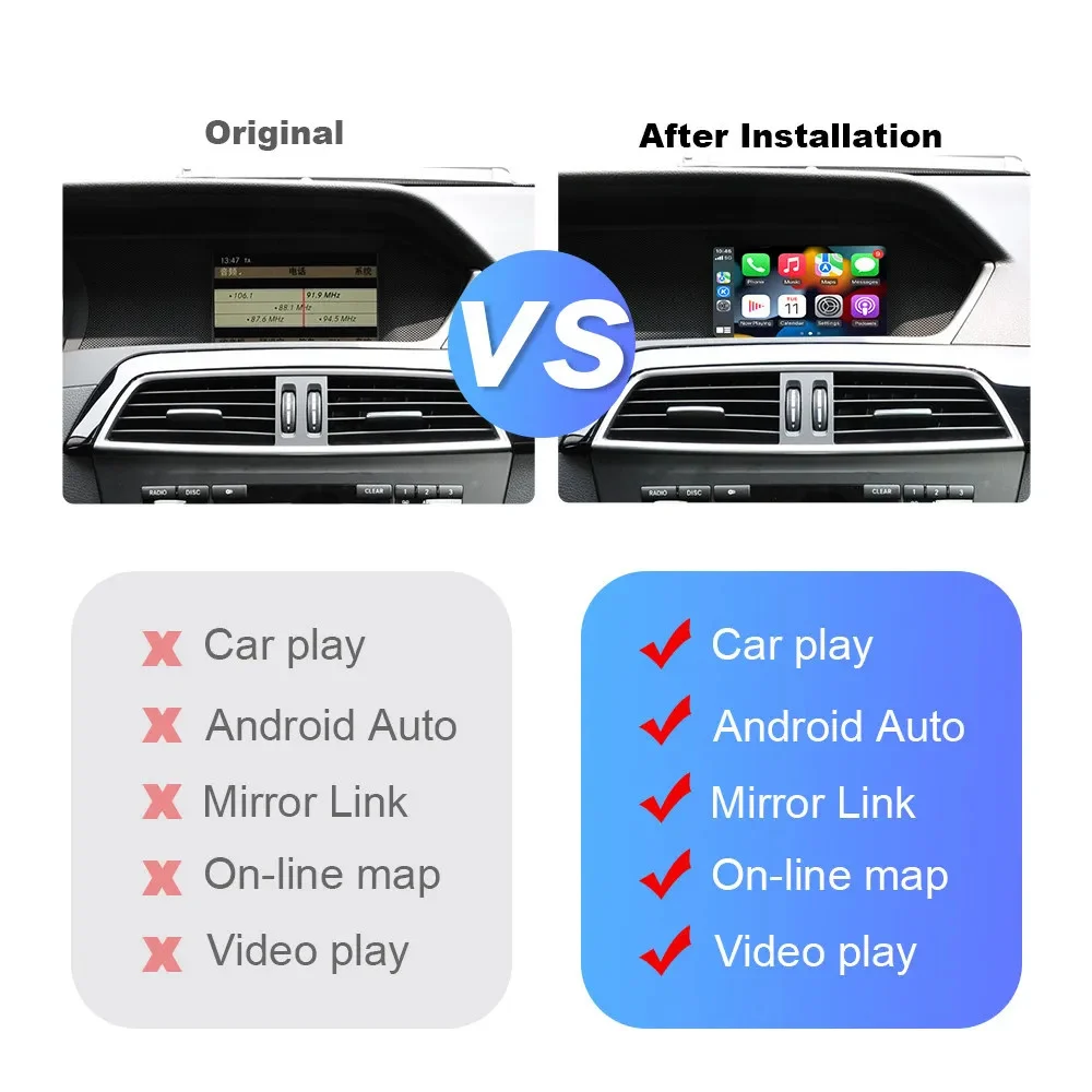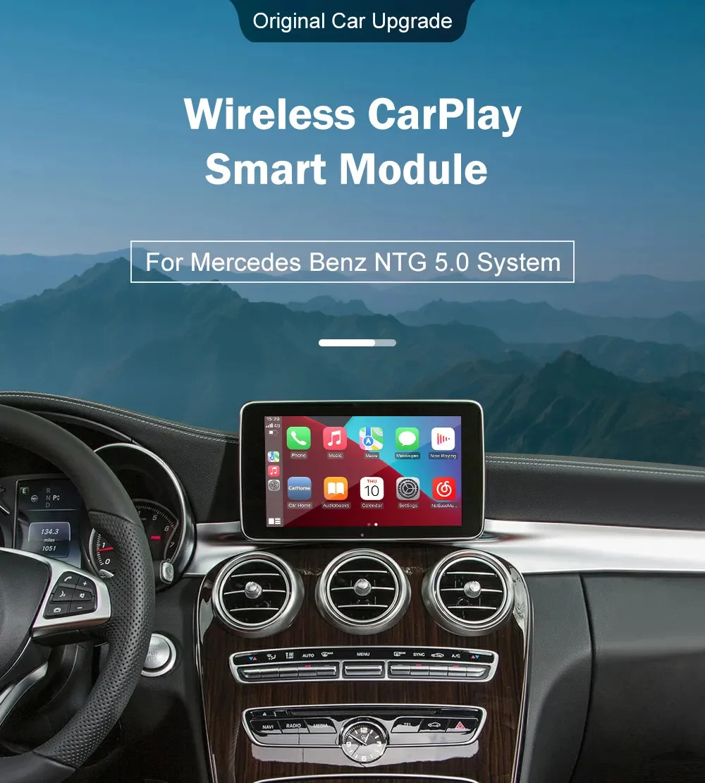 Acest Modul Wireless Carplay si Android Auto se ingrează perfect cu toate modelele MERCEDES echipate din fabrică cu sistem infotainment NTG 5.0